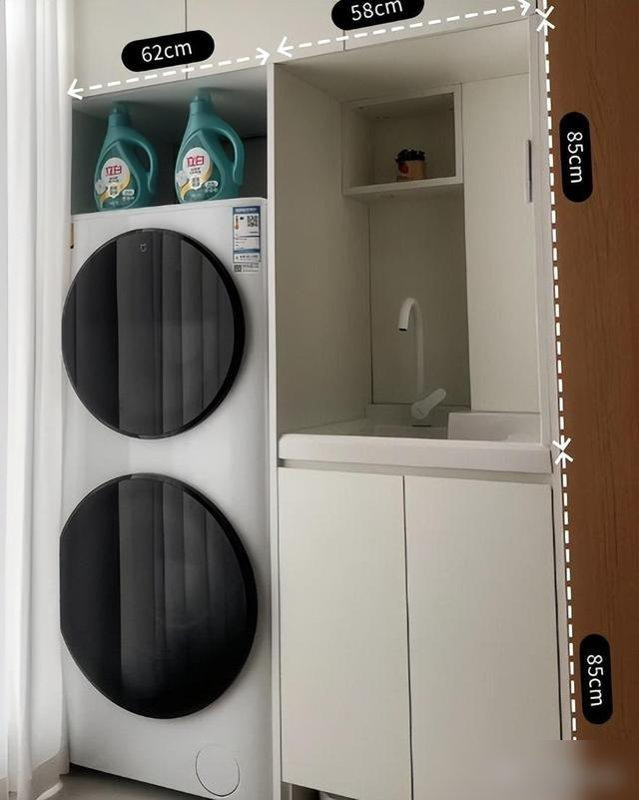 现在我家的操作特简单:洗衣机直接嵌在厨房的定制柜里——没错,就是厨房!
